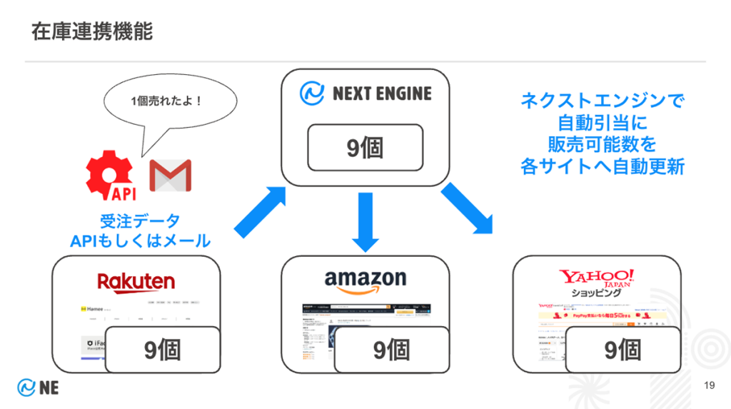私はセールスの責任者でもあるので、商談のシーンでお客様にお会いすることが多いんですけど、最初にお会いする際に「ネクストエンジンってどう使うの?」みたいな話になって、まぁ、楽天市場・Amazon・Yahoo!ショッピングの3モールの話から入ることが多いですね。
